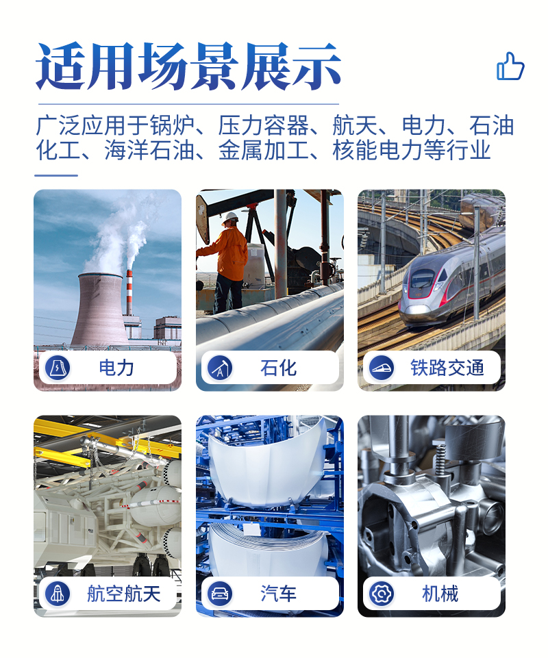 超聲波探傷儀是一種便攜式工業無損探傷儀,它能夠便攜、無損傷、準確地進行工件內部多種缺陷(裂紋、疏松、氣孔、夾雜等)的檢測、定位、評估和診斷。既可以用于實驗室,又可以用于工程現場。應用在鍋爐、壓力容器、航天、電力、石油、化工、海洋石油、管道、船舶制造、汽車、機械制造、冶金、金屬加工、鋼結構、鐵路交通、核能電力、高校等行業。