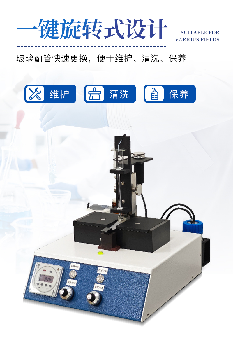 ?。?)一鍵旋轉式設計,玻璃薊管快速更換,便于維護、清洗、保養;