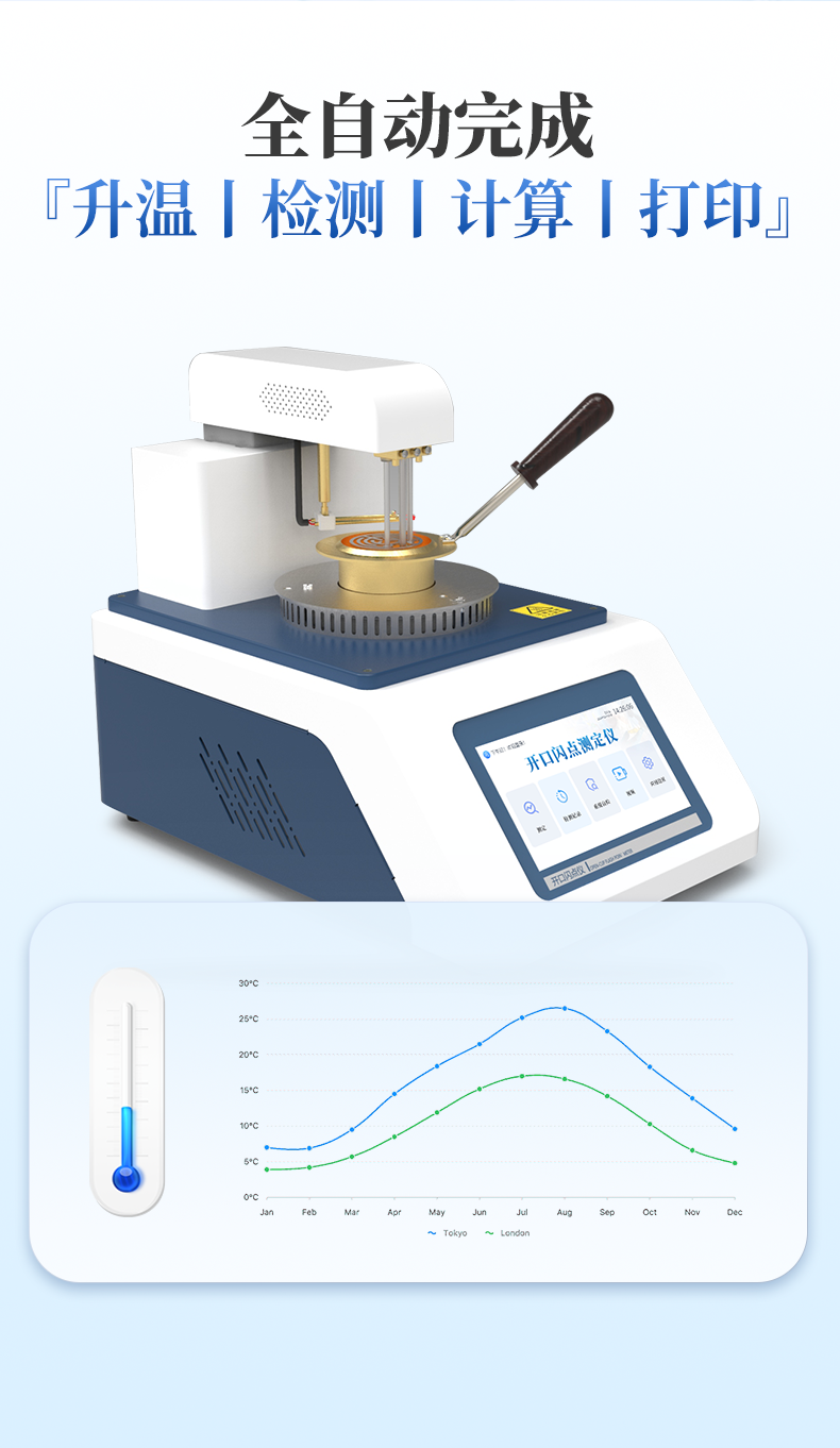 儀器按照GB/T 3536—2008方法規定的升溫曲線加熱,溫度接近預設閃點值時自動點火,當出現閃點和燃點時儀器自動鎖定結果,并顯示和打印,同時啟動風機自動對加熱器進行冷卻。