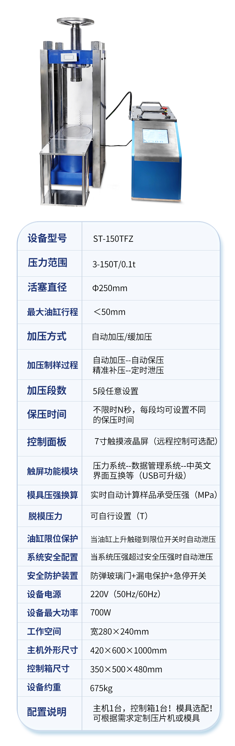 配置說明主機1臺,控制箱1臺!模具選配!可根據需求定制壓片機或模具
