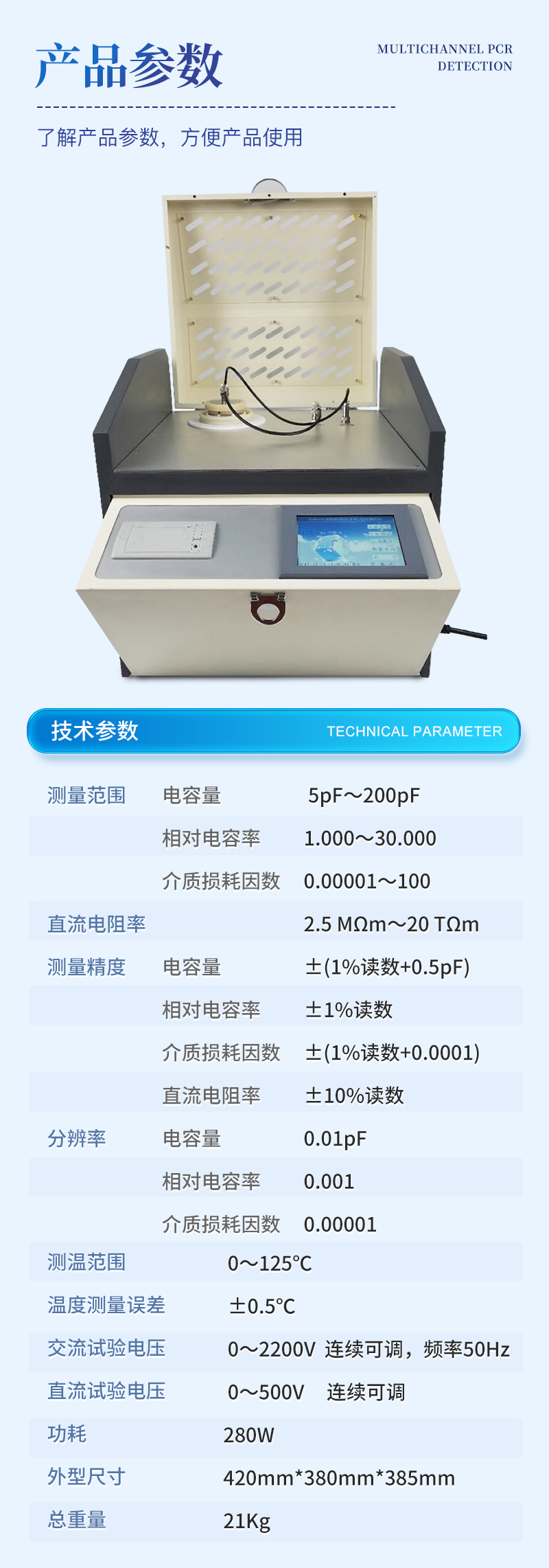 1. 高度自動化,升溫、測量介損 、測量電阻率可一次完成;