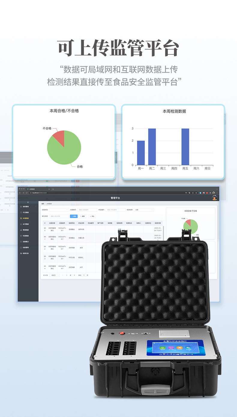 4、一體化便攜式快檢設(shè)備,滿足現(xiàn)場及流動檢測使用需求。